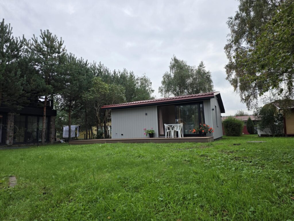 Svetainė sujungta su virtuve (šaldytuvas su kamera, dviejų skylių elektrinė kaitlentė, mikrobangų krosnelė, indai, lėkštės)
